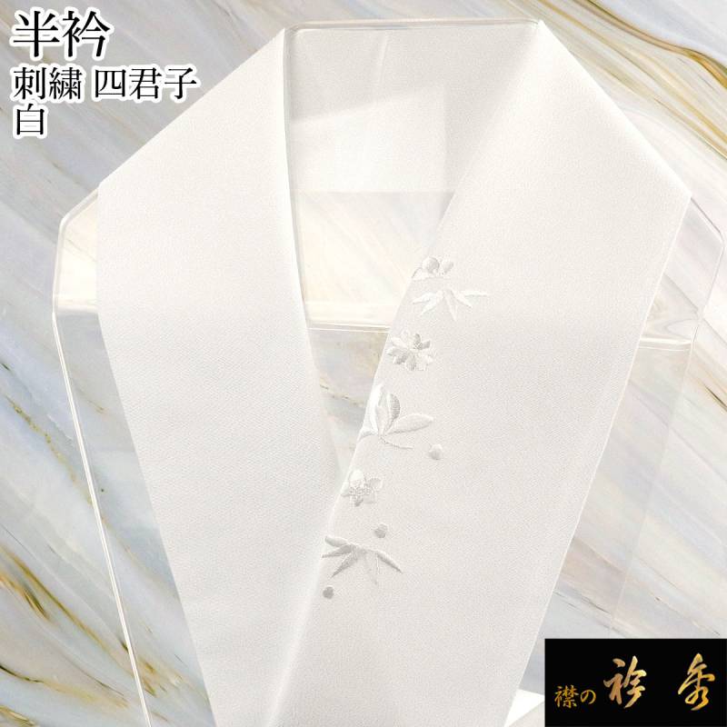 衿秀 公式 半衿 はんえり 刺繍 白 四君子 洗える ポリエステル 日本製 和装小物 和小物 えりひで 襟の衿秀