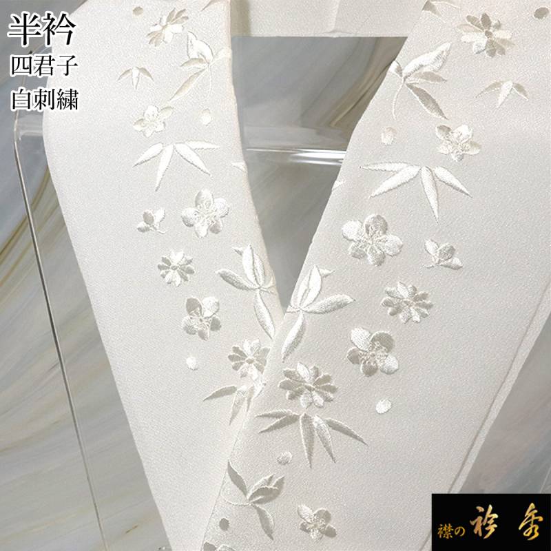 衿秀 公式 半衿 はんえり 刺繍 四君子 花 吉祥紋様 ホワイト 白地 洗える ポリエステル 日本製 和装小物 和小物 えりひで 襟の衿秀
