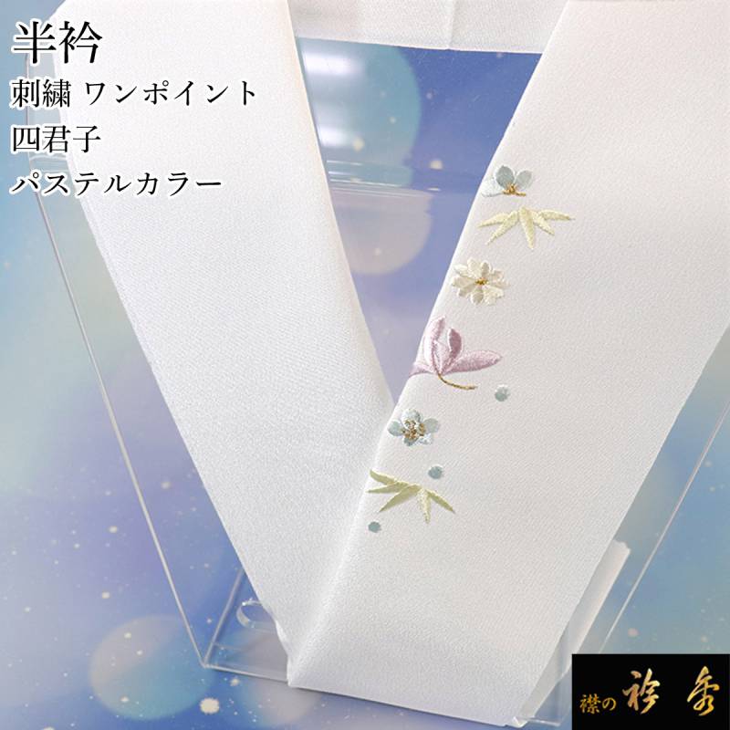 衿秀 公式 半衿 はんえり 刺繍 ワンポイント 四君子 パステルカラー 洗える ポリエステル 日本製 和装小物 和小物 えりひで 襟の衿秀