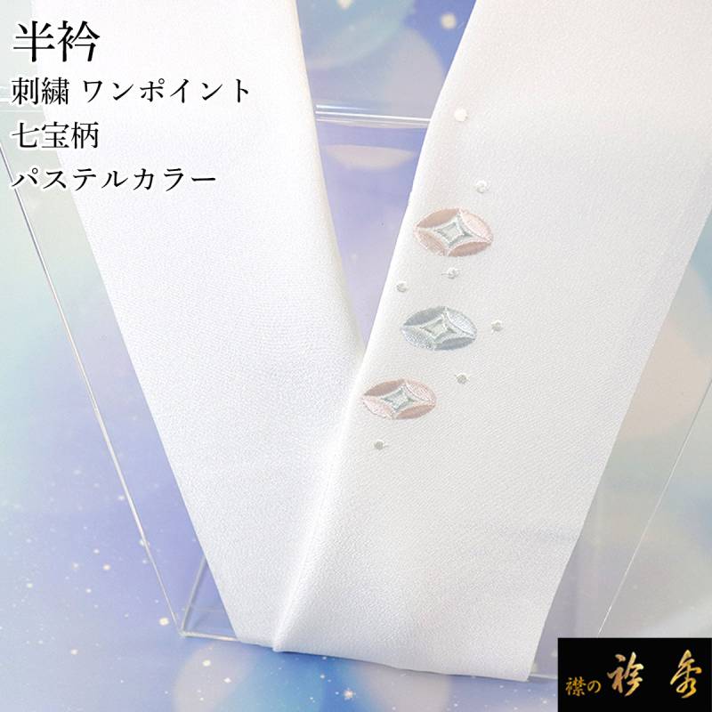 衿秀 公式 半衿 はんえり 刺繍 ワンポイント 七宝 パステルカラー 洗える ポリエステル 日本製 和装小物 和小物 えりひで 襟の衿秀