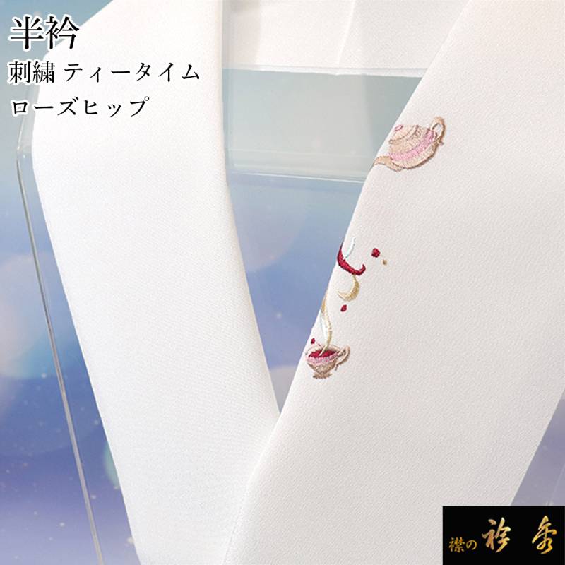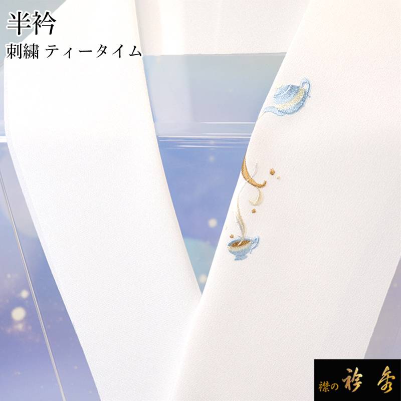 衿秀 公式 半衿 はんえり 刺繍 ワンポイント ティータイム 洗える ポリエステル 日本製 和装小物 和小物 えりひで 襟の衿秀