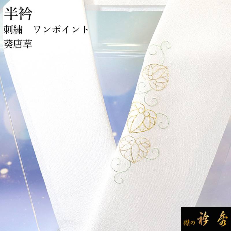 衿秀 公式 半衿 はんえり 刺繍 ワンポイント 葵唐草 洗える ポリエステル 日本製 和装小物 和小物 えりひで 襟の衿秀