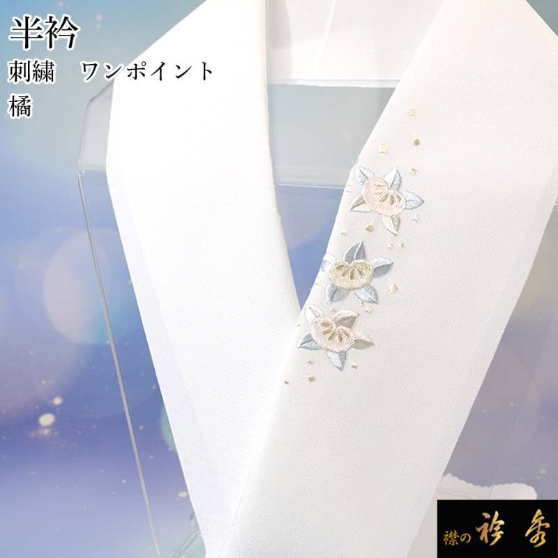 衿秀 公式 半衿 はんえり 刺繍 ワンポイント 橘 洗える ポリエステル 日本製 和装小物 和小物 えりひで 襟の衿秀