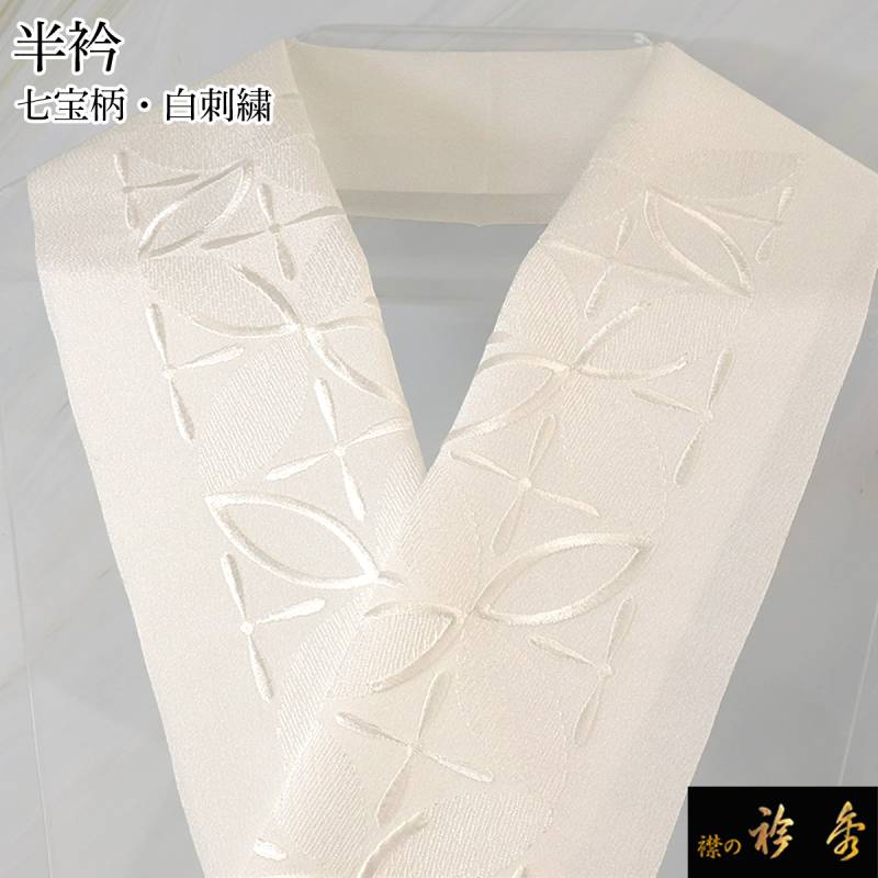 衿秀 公式 半衿 はんえり 刺繍 七宝 白 洗える ポリエステル 日本製 和装小物 和小物 えりひで 襟の衿秀