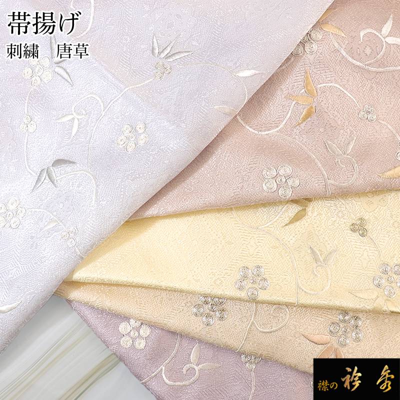 衿秀 公式 帯揚 帯揚げ おびあげ 刺繍 唐草 地紋 菱紋様 正絹 日本製 和装小物 和小物 えりひで 襟の衿秀