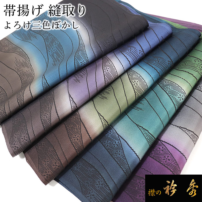 衿秀 公式 帯揚 帯揚げ おびあげ 三色 ぼかし よろけ 防染 正絹 カジュアル 洒落 日本製 和装小物 和小物 えりひで 襟の衿秀
