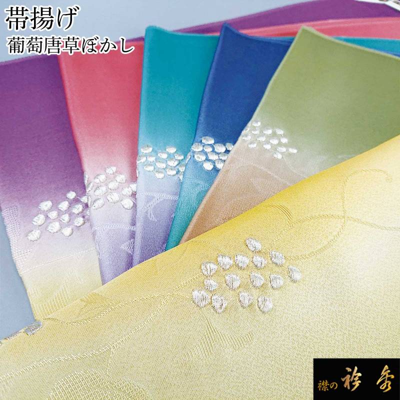 衿秀 公式 帯揚 帯揚げ おびあげ 二色ぼかし 葡萄唐草 刺繍 地紋 正絹 カジュアル 洒落 日本製 和装小物 和小物 えりひで 襟の衿秀