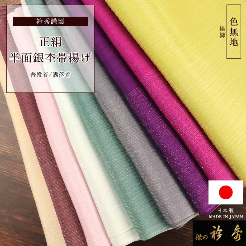 衿秀 公式 帯揚げ 楊柳 銀杢 正絹 日本製 キンチ 半分 半面 ハーフ おびあげ 単衣 帯揚 和装小物 和小物 えりひで 襟の衿秀 sp tb