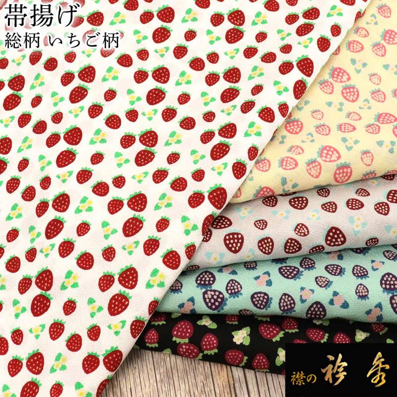 衿秀 公式 帯揚 帯揚げ おびあげ 苺 いちご ストロベリー 総柄 カジュアル 正絹 日本製 和装小物 和小物 えりひで 襟の衿秀