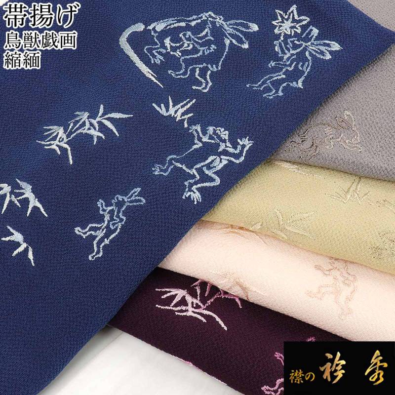 衿秀 公式 帯揚 帯揚げ おびあげ 鳥獣戯画 動物 縮緬 ちりめん カジュアル 正絹 日本製 和装小物 和小物 えりひで 襟の衿秀