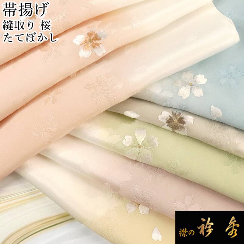 衿秀 公式 帯揚 帯揚げ おびあげ 桜 さくら 花 縫取り 刺繍 金糸 ぼかし フォーマル 正絹 日本製 えりひで 和装小物 和小物 襟の衿秀