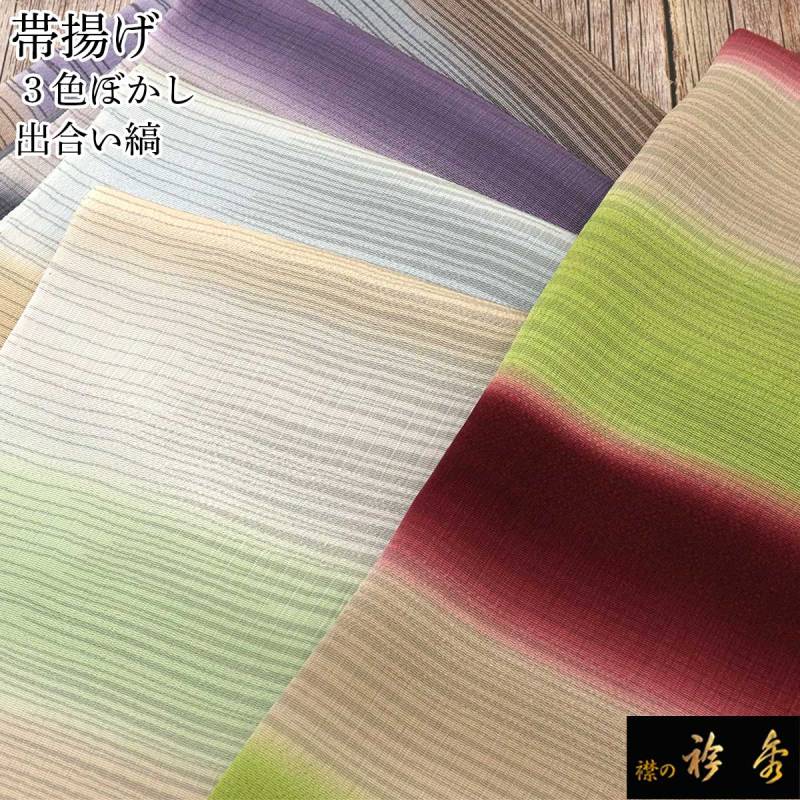 衿秀 公式 帯揚 帯揚げ おびあげ 三色ぼかし 出合い縞 しましま カジュアル 洒落 日本製 和装小物 和小物 えりひで 襟の衿秀