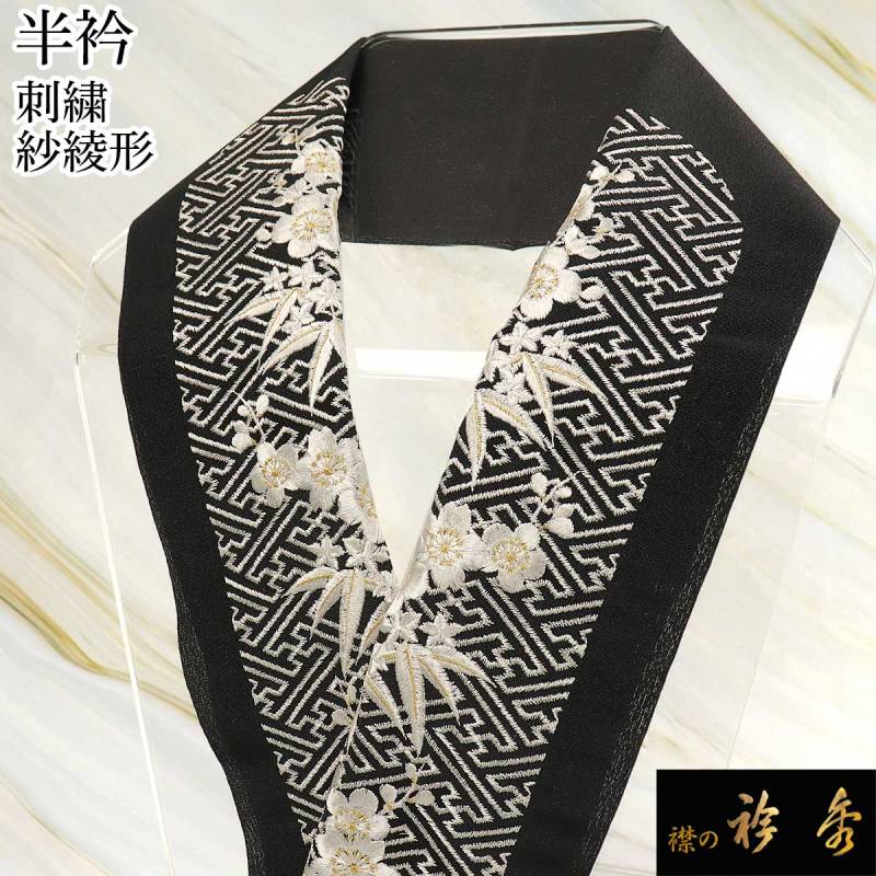 衿秀 公式 半衿 はんえり 紗綾形 梅 桜 白銀 黒 フォーマル ポリエステル100% 洗える 日本製 和装小物 和小物 えりひで 襟の衿秀