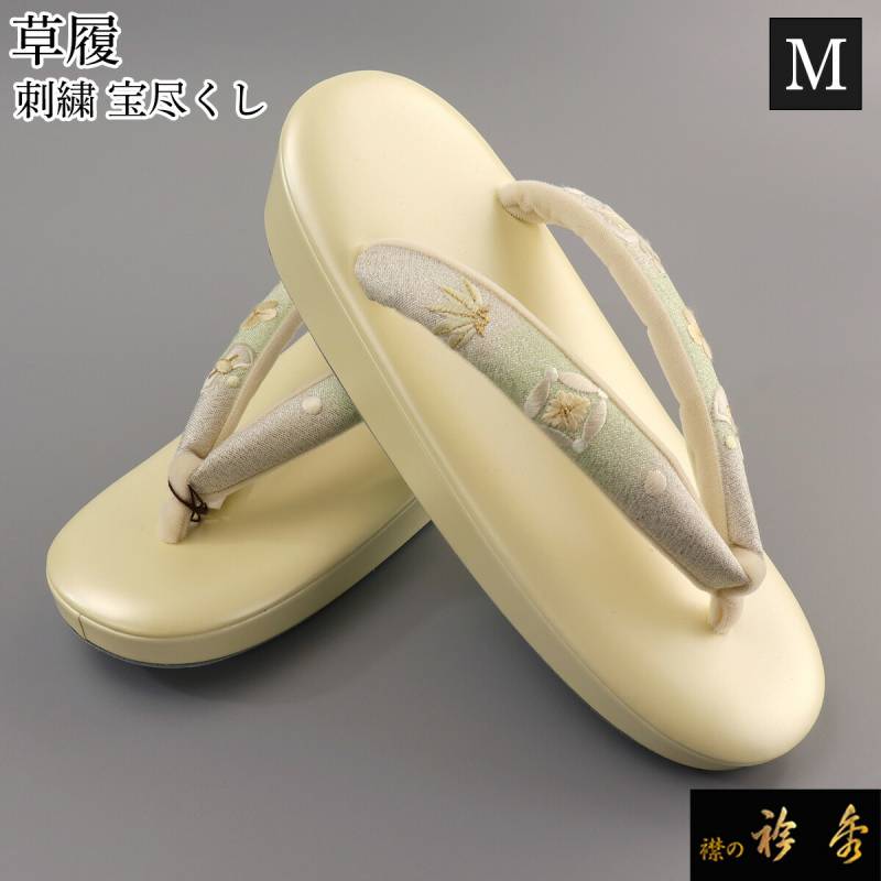 衿秀 公式 草履 ぞうり 宝尽くし ぼかし 刺繍 寸0小判型 牛革 日本製 和装小物 和小物 えりひで 襟の衿秀