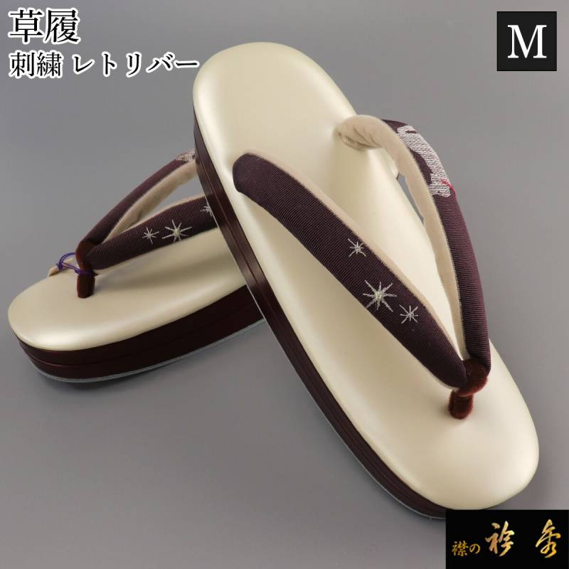 衿秀 公式 草履 ぞうり 犬 レトリバー 刺繍 牛革 日本製 M 和装小物 和小物 えりひで 襟の衿秀