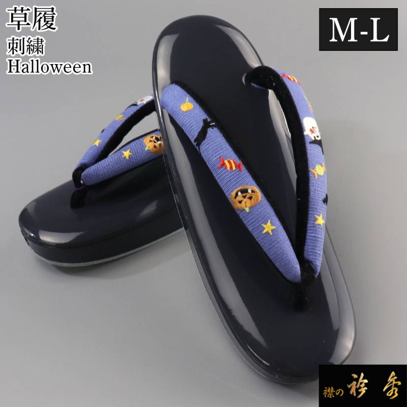 衿秀 公式 草履 ぞうり Halloween ハロウィン かぼちゃ 刺繍 牛革 日本製 M 和装小物 和小物 えりひで 襟の衿秀