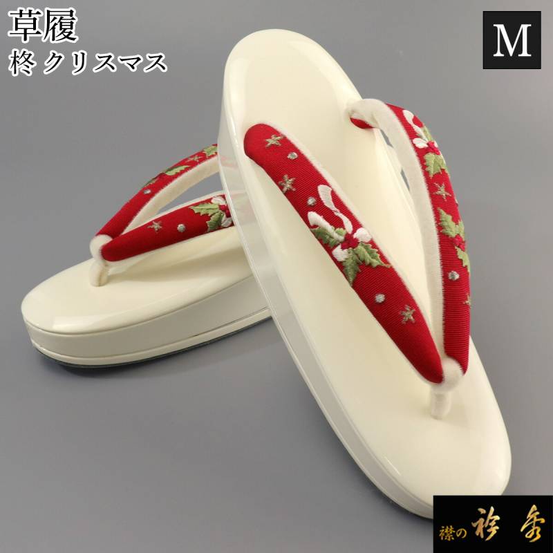 衿秀 公式 草履 ぞうり クリスマス Christmas Xmas 柊 赤 冬 刺繍 牛革 日本製 和装小物 和小物 えりひで 襟の衿秀