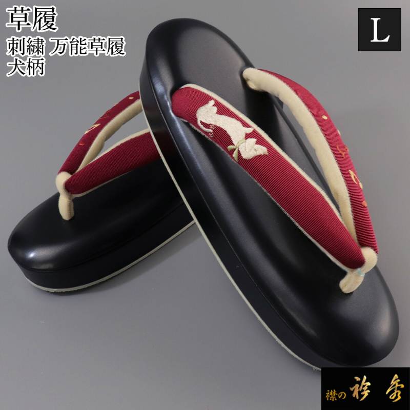 衿秀 公式 草履 ぞうり 犬 ダックス 刺繍 晴雨 音符 フォーマル シャレ 赤 レッド 普段着 刺繍 履きやすい 防水 日本製 雨 L 襟の衿秀 sp