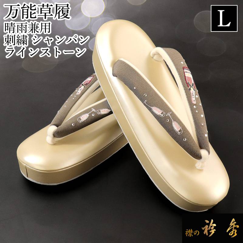 衿秀 公式 草履 ぞうり 刺繍 晴雨晴雨兼用 シャンパン ラインストーン ブラウン パールベージュ L 履きやすい 防水 日本製 雨 襟の衿秀 sp
