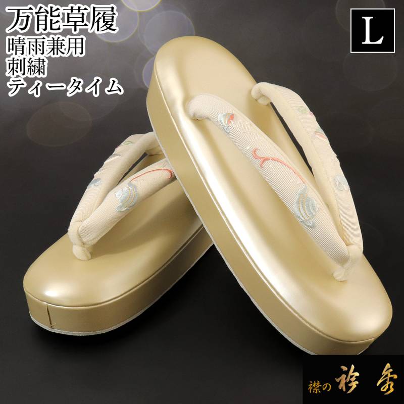 衿秀 公式 草履 ぞうり 刺繍 晴雨 晴雨兼用 ティータイム 紅茶 マカロン パールベージュ L シャレ 普段着 履きやすい 防水 日本製 襟の衿秀 sp
