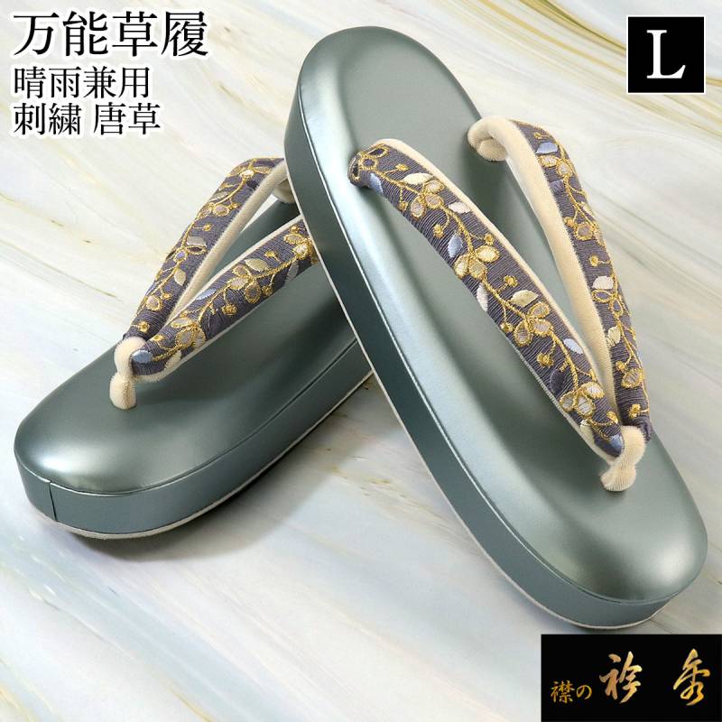 衿秀 公式 草履 ぞうり 刺繍 晴雨晴雨兼用 唐草 金糸 ネイビー パールグレー L 履きやすい 防水 日本製 雨 襟の衿秀 sp
