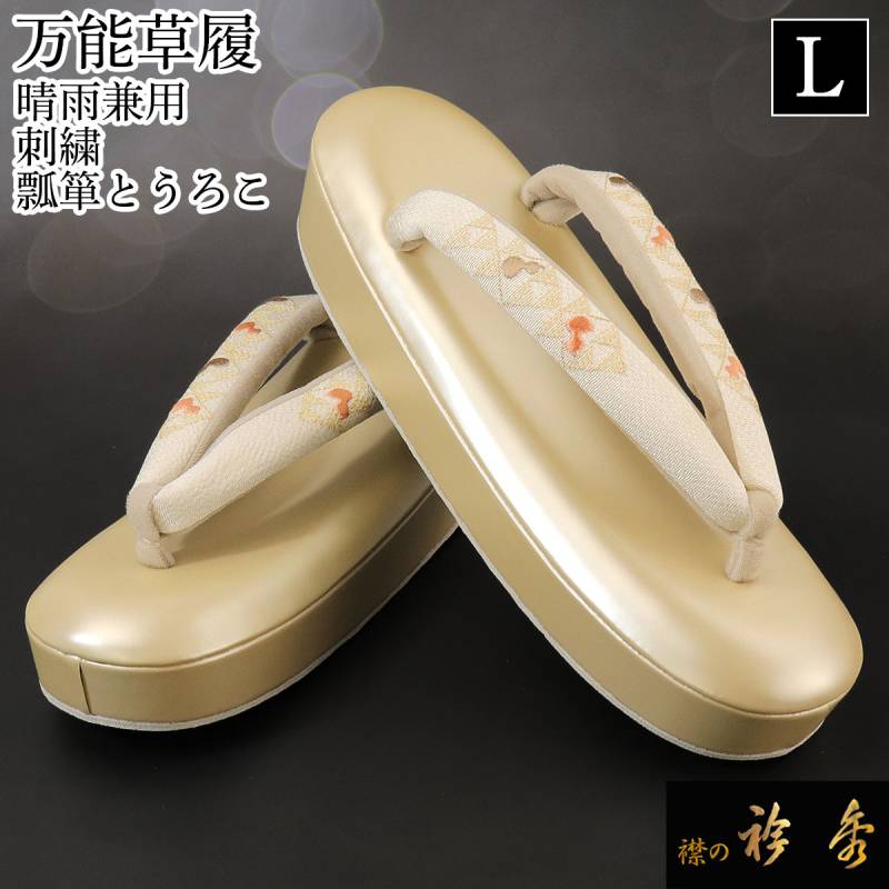 衿秀 公式 草履 ぞうり 刺繍 晴雨 晴雨兼用 瓢箪 ひょうたん 鱗 うろこ パールベージュ L シャレ 普段着 履きやすい 防水 日本製 襟の衿秀 sp