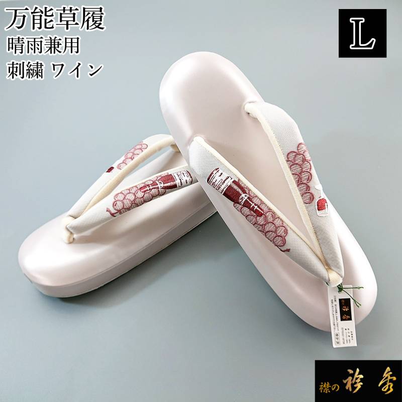 衿秀 公式 草履 ぞうり ワイン 葡萄 ブドウ ブラウン 茶色 刺繍 晴雨 L シャレ 普段着 履きやすい 防水 日本製 雨 襟の衿秀 sp