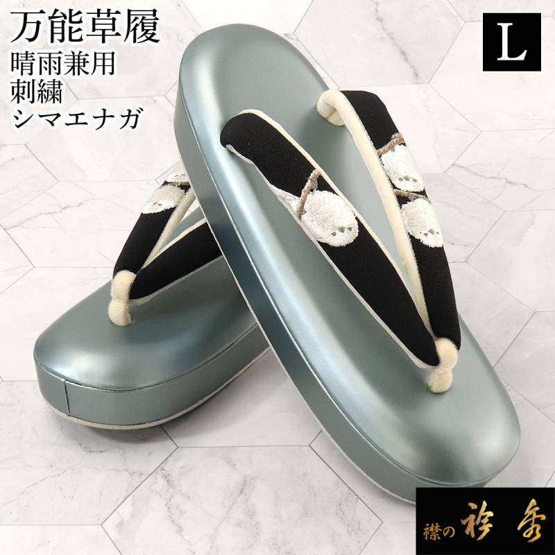 衿秀 公式 草履 ぞうり 刺繍 晴雨 晴雨兼用 シマエナガ 鳥 パールグレー L シャレ 普段着 履きやすい 防水 日本製 襟の衿秀 sp