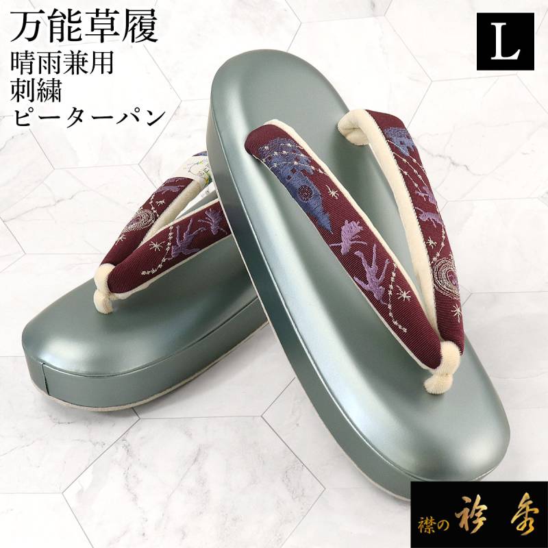 衿秀 公式 草履 ぞうり 刺繍 晴雨 晴雨兼用 ピーターパン パールグレー L シャレ 普段着 履きやすい 防水 日本製 襟の衿秀 sp