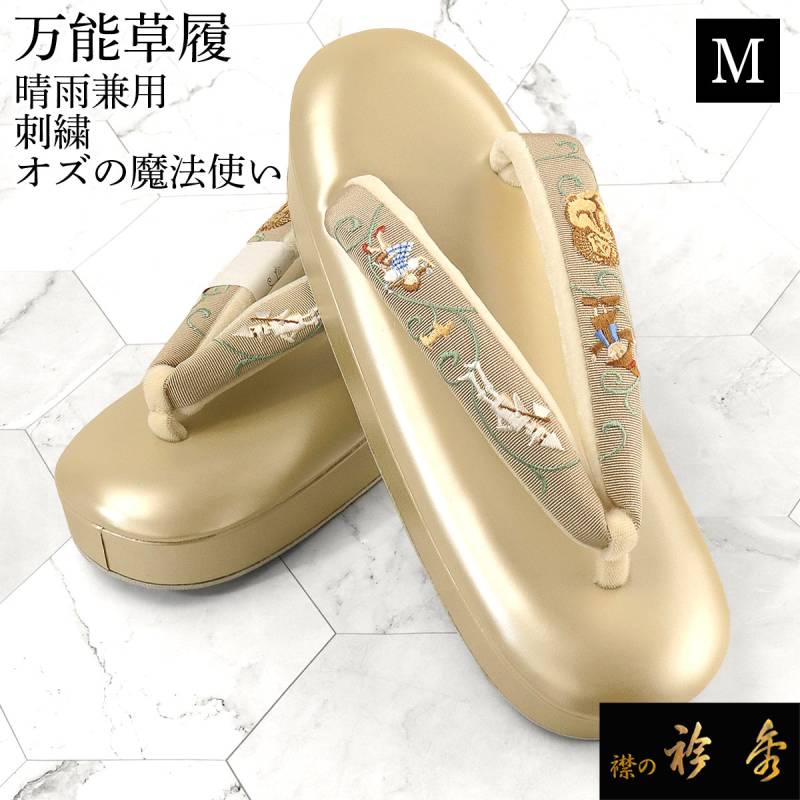 衿秀 公式 草履 ぞうり 刺繍 晴雨 晴雨兼用 オズの魔法使い 童話 ゴールド M シャレ 普段着 履きやすい 防水 日本製 雨 襟の衿秀 sp