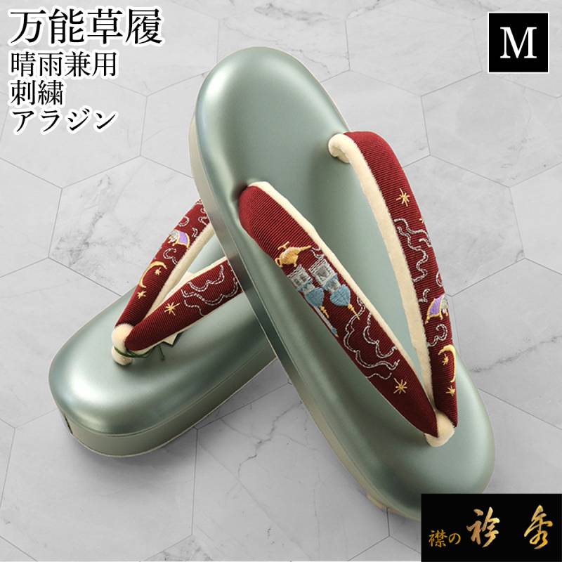 衿秀 公式 草履 ぞうり 晴雨 晴雨兼用 刺繍 アラジン 赤色 レッド M シャレ 普段着 履きやすい 防水 日本製 雨 襟の衿秀 sp