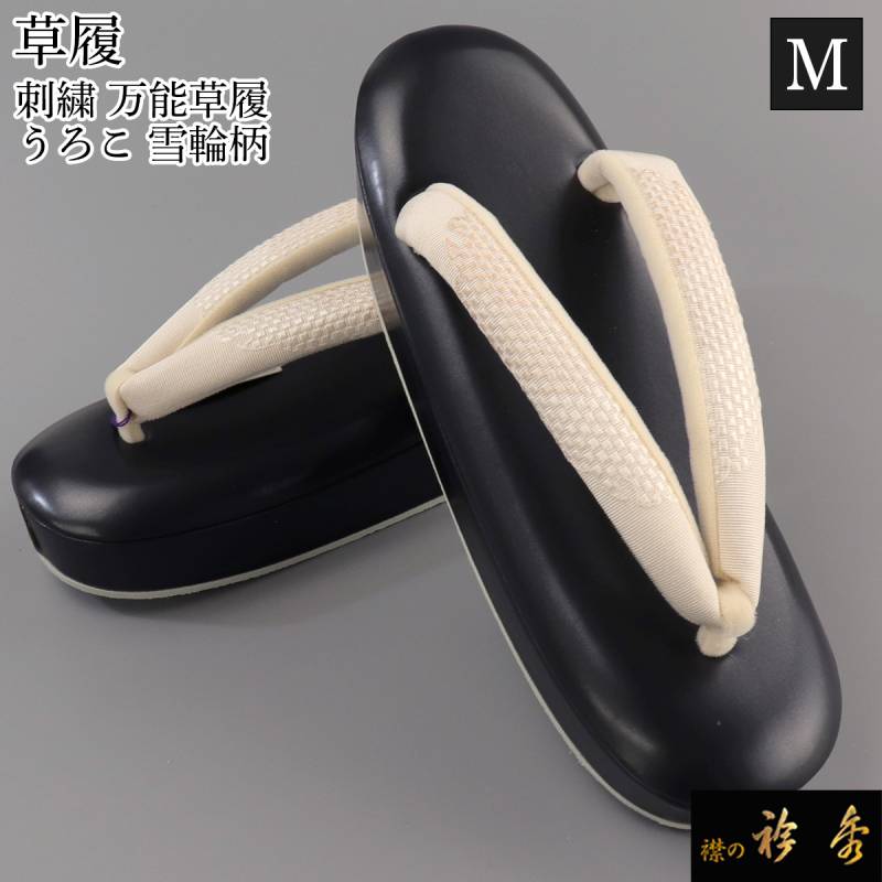 衿秀 公式 草履 ぞうり 雪輪 ブラック 刺繍 晴雨 M シャレ 普段着 履きやすい 防水 日本製 雨 襟の衿秀 sp