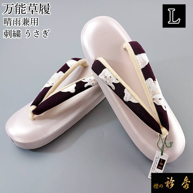衿秀 公式 草履 ぞうり 刺繍 晴雨 晴雨兼用 うさぎ L シャレ 普段着 履きやすい 防水 日本製 襟の衿秀 sp