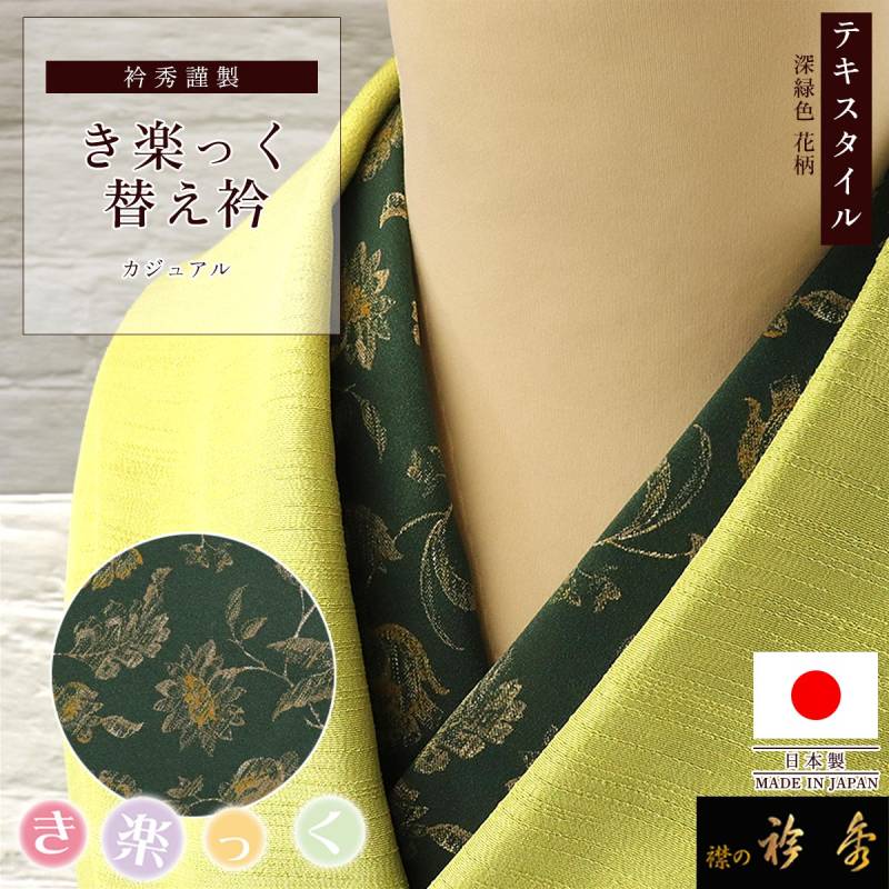 衿秀 公式 き楽っく 替え衿 替衿 かええり テキスタイル 深緑色 花 洒落 きらっく 日本製 和装小物 えりひで 襟の衿秀 きものすなお