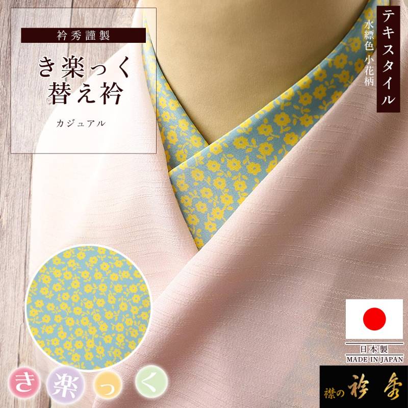衿秀 公式 き楽っく 替え衿 替衿 かええり テキスタイル 小花柄 洒落 水縹色 ブルー きらっく 日本製 和装小物 えりひで 襟の衿秀 きものすなお