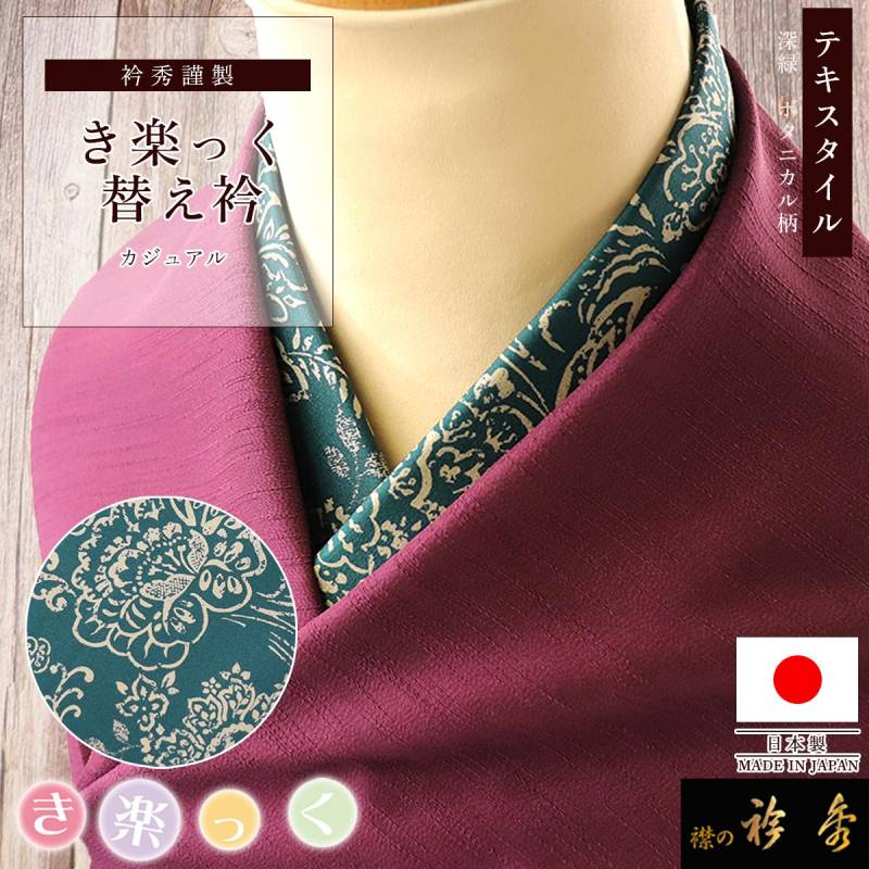 衿秀 公式 き楽っく 替え衿 替衿 かええり テキスタイル 深緑 ボタニカル 洒落 きらっく 日本製 和装小物 えりひで 襟の衿秀 きものすなお