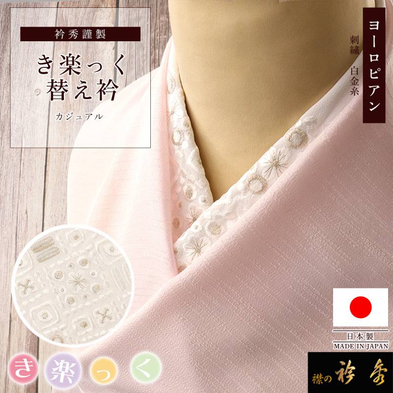 衿秀 公式 き楽っく 替え衿 替衿 かええり 刺繍 ヨーロピアン 白 白金糸 半衿 はんえり きらっく 洗える 日本製 えりひで 襟の衿秀 すなお きものすなお