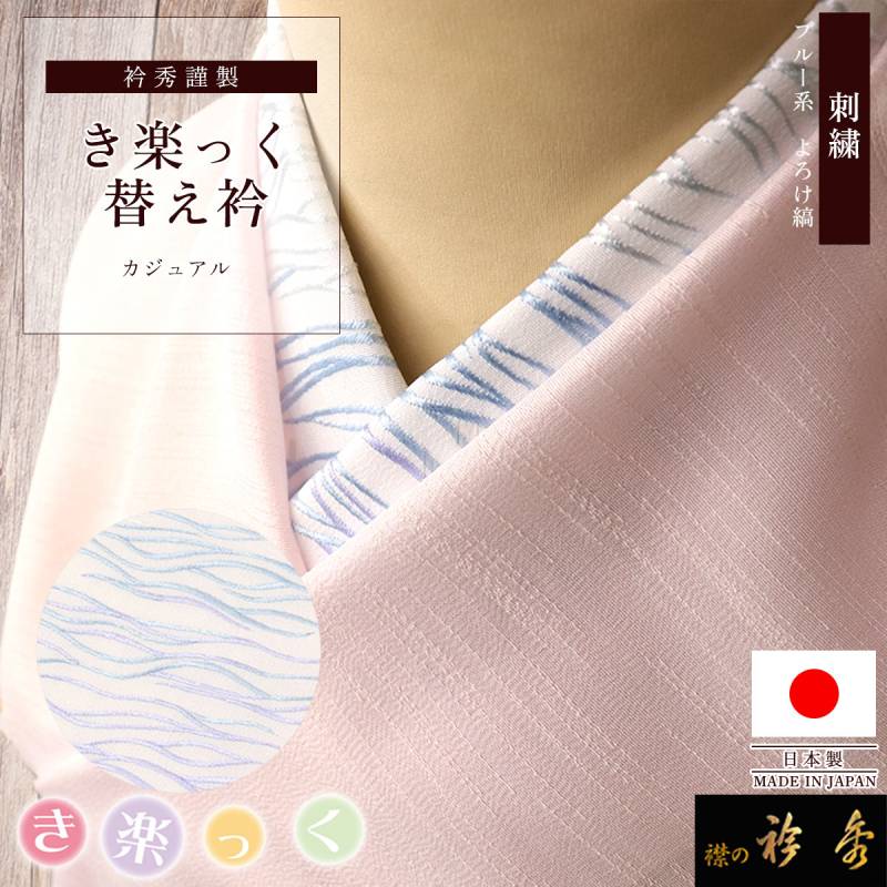 衿秀 公式 き楽っく 替え衿 替衿 かええり 刺繍 よろけ縞 ブルー系 きらっく カラー 洗える 日本製 和装小物 えりひで 襟の衿秀 すなお きものすなお