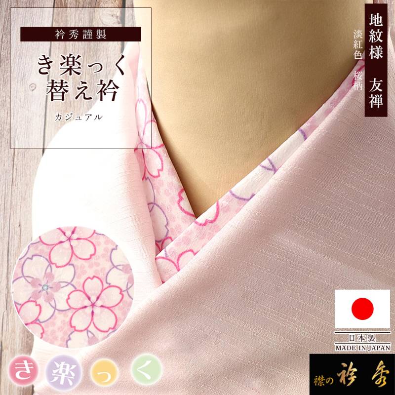 衿秀 公式 き楽っく 替え衿 替衿 かええり 綸子 地紋 友禅 桜 さくら 花 淡紅色 きらっく 洗える 日本製 えりひで 襟の衿秀 すなお きものすなお