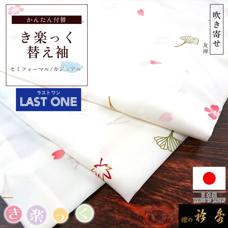 衿秀 公式 ラストワン き楽っく 替え袖 きらっく 替袖 かえそで 友禅 吹き寄せ 白 洗える 簡単着付け すなお きものすなお
