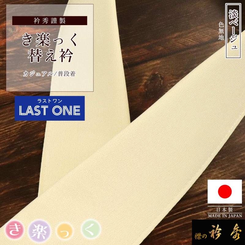 衿秀 公式《ラストワン》き楽っく 替え衿 淡ベージュ 色無地 替衿 かええり 半衿 きらっく 洗える 日本製 和装小物 襟の衿秀 きものすなお tk tb