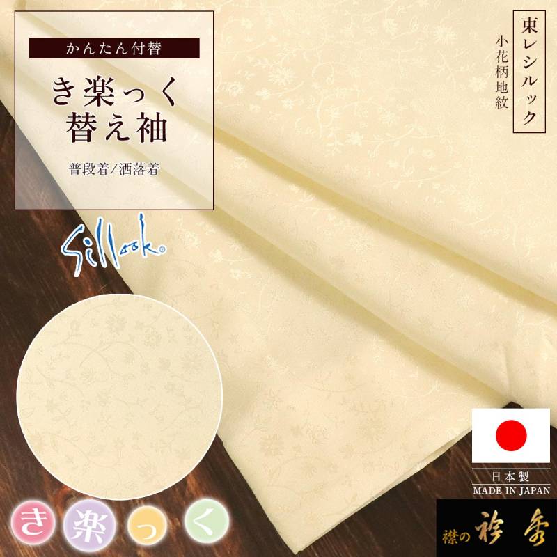 衿秀 公式 き楽っく 替え袖 シルック 東レ 日本製 淡ベージュ 小花 地紋 きらっく 替袖 かえそで 簡単 和装小物 和小物 えりひで 襟の衿秀 すなお きものすなお