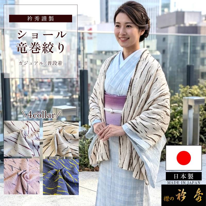 衿秀 公式 ショール 正絹 竜巻絞り 日本製 和装ショール 着物ショール 絹100% 羽織り 絞り染め カジュアル 普段着 洋装 和洋 レディース 伝統工芸 衿秀