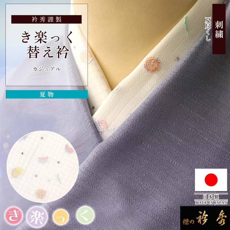 衿秀 公式 き楽っく 替え衿 替衿 かええり 夏 刺繍 夏尽くし 格子絽 ラインストーン きらっく 日本製 和装小物 えりひで 襟の衿秀 すなお きものすなお