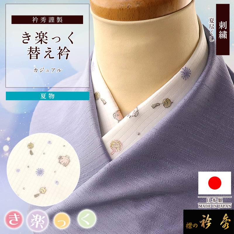 衿秀 公式 き楽っく 替え衿 替衿 かええり 夏 刺繍 夏尽くし 蚊取り線香 格子絽 ラインストーン きらっく 日本製 和装小物 えりひで 襟の衿秀 すなお きものすなお