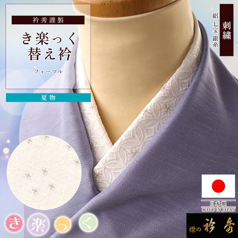 衿秀 公式 き楽っく 替え衿 替衿 かええり 夏 絽 刺繍 七宝 白銀 フォーマル きらっく 洗える 日本製 和装小物 えりひで 襟の衿秀 すなお きものすなお