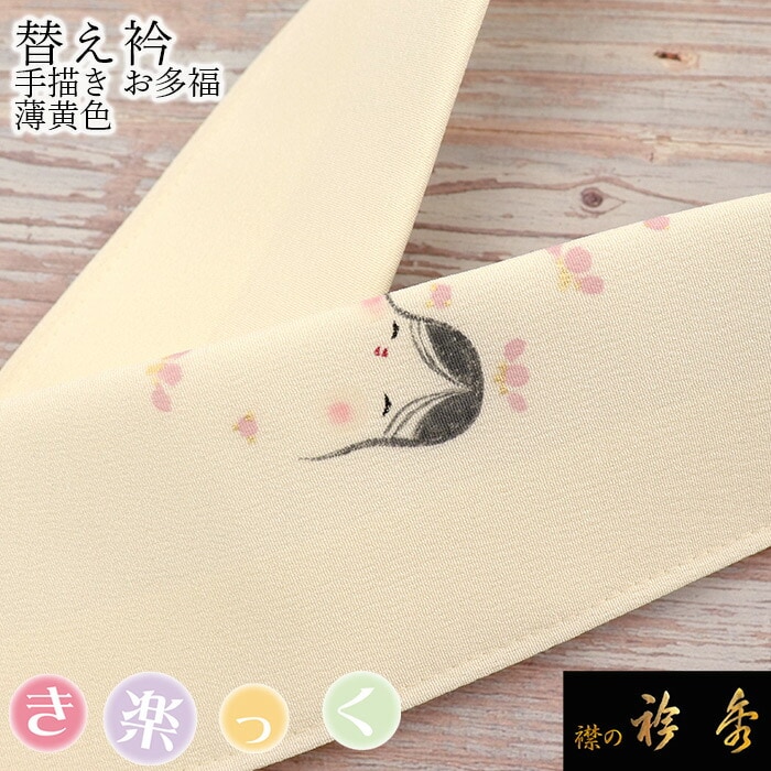 衿秀 公式 き楽っく 替え衿 替衿 かええり お多福 おたふく 薄黄色 手描き きらっく 正月 節分 洗える 日本製 和装小物 えりひで 襟の衿秀 すなお きものすなお