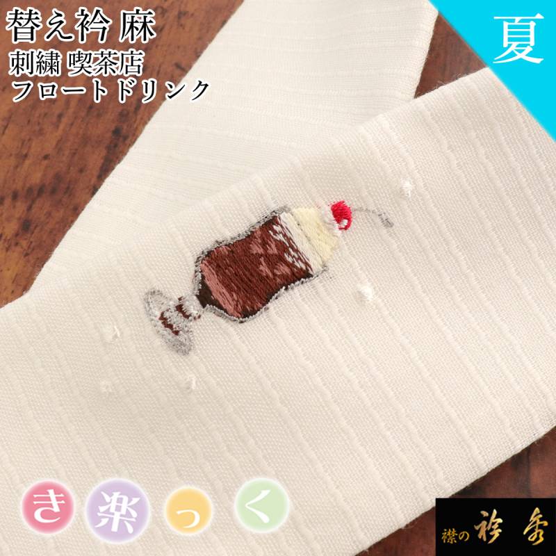 衿秀 公式 き楽っく 替え衿 替衿 かええり 夏 刺繍 麻 コーラフロート レトロ 喫茶店 きらっく 日本製 和装小物 えりひで 襟の衿秀 すなお きものすなお