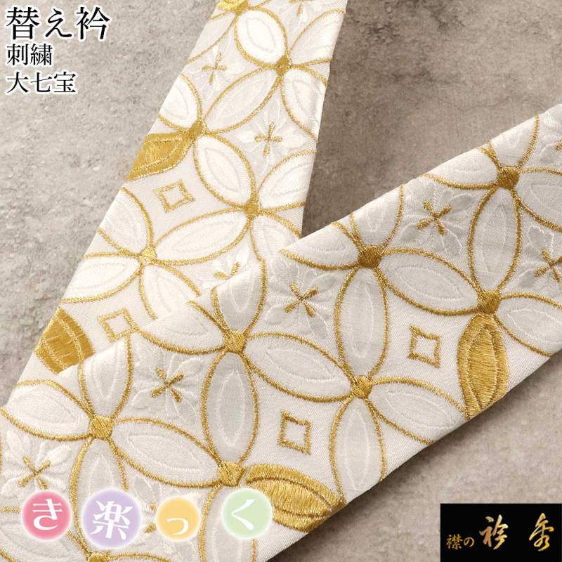 衿秀 公式 き楽っく 替え衿 替衿 かええり 刺繍 大七宝 金糸 留袖 訪問着 振袖 きらっく 洗える 日本製 和装小物 えりひで 襟の衿秀 すなお きものすなお