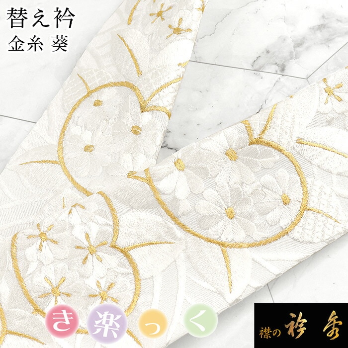 衿秀 公式 き楽っく 替え衿 替衿 かええり 刺繍 葵 金糸 フォーマル 半衿 日本製 洗える 襟の衿秀 すなお きものすなお